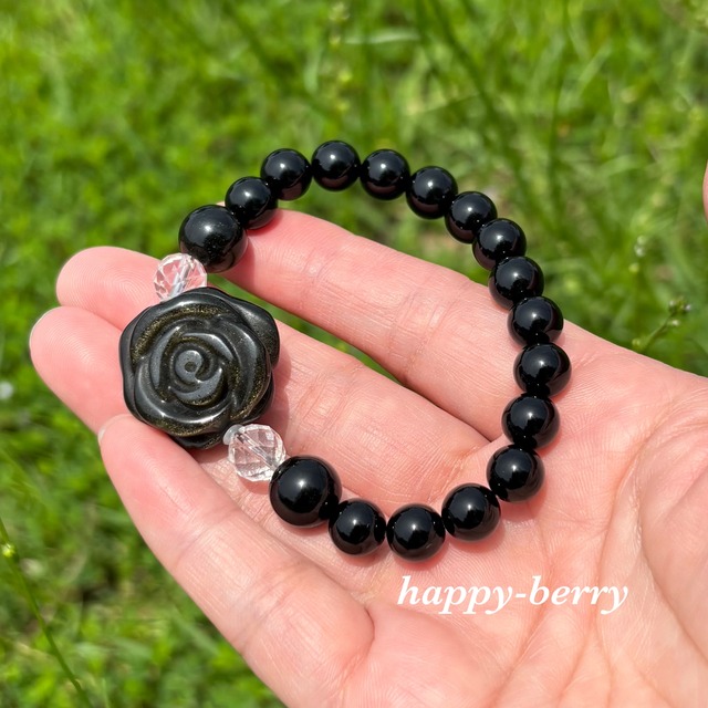 ゴールデンオブシディアン薔薇とオニキス 天然石ブレスレット