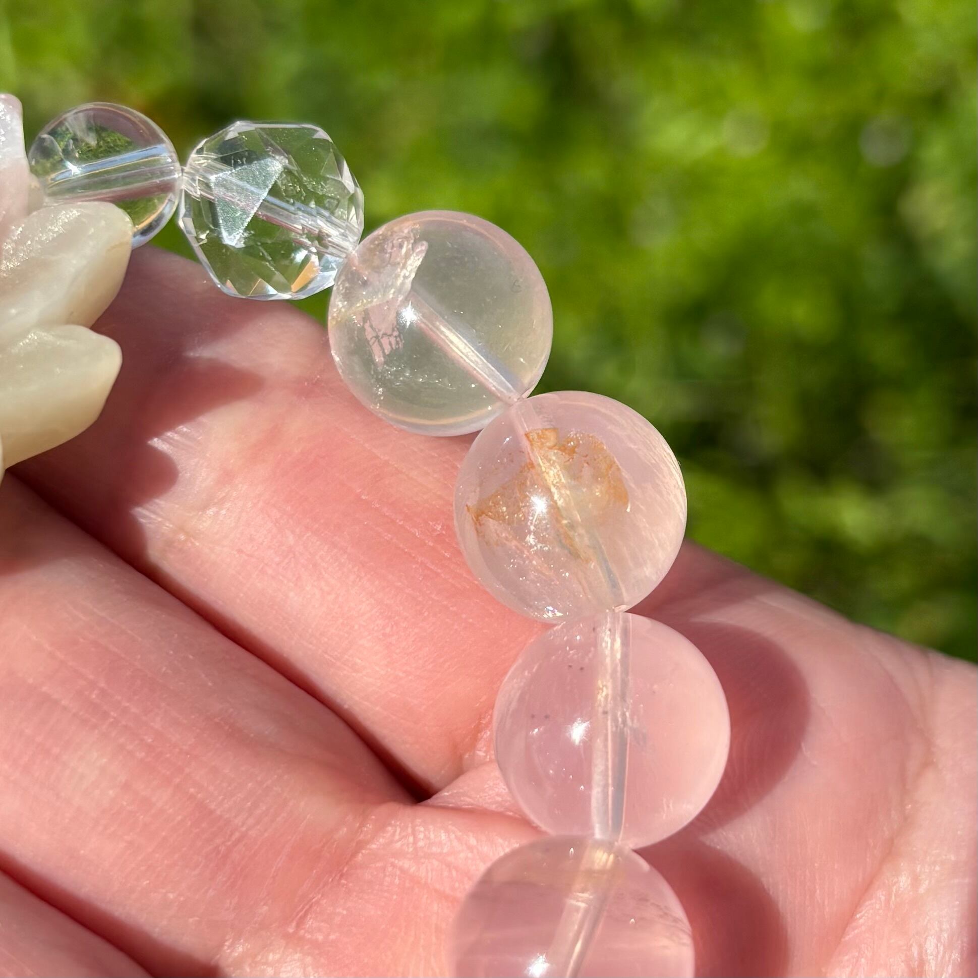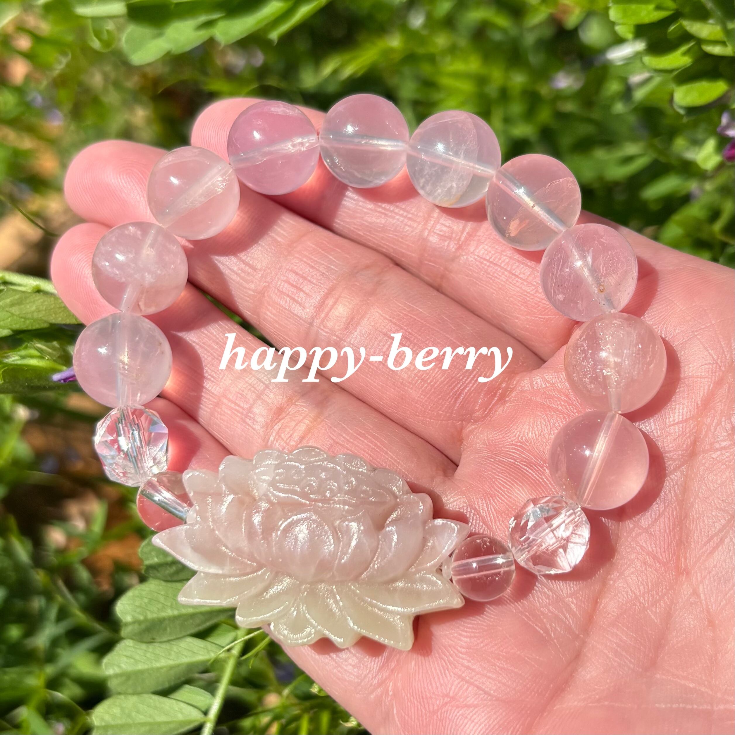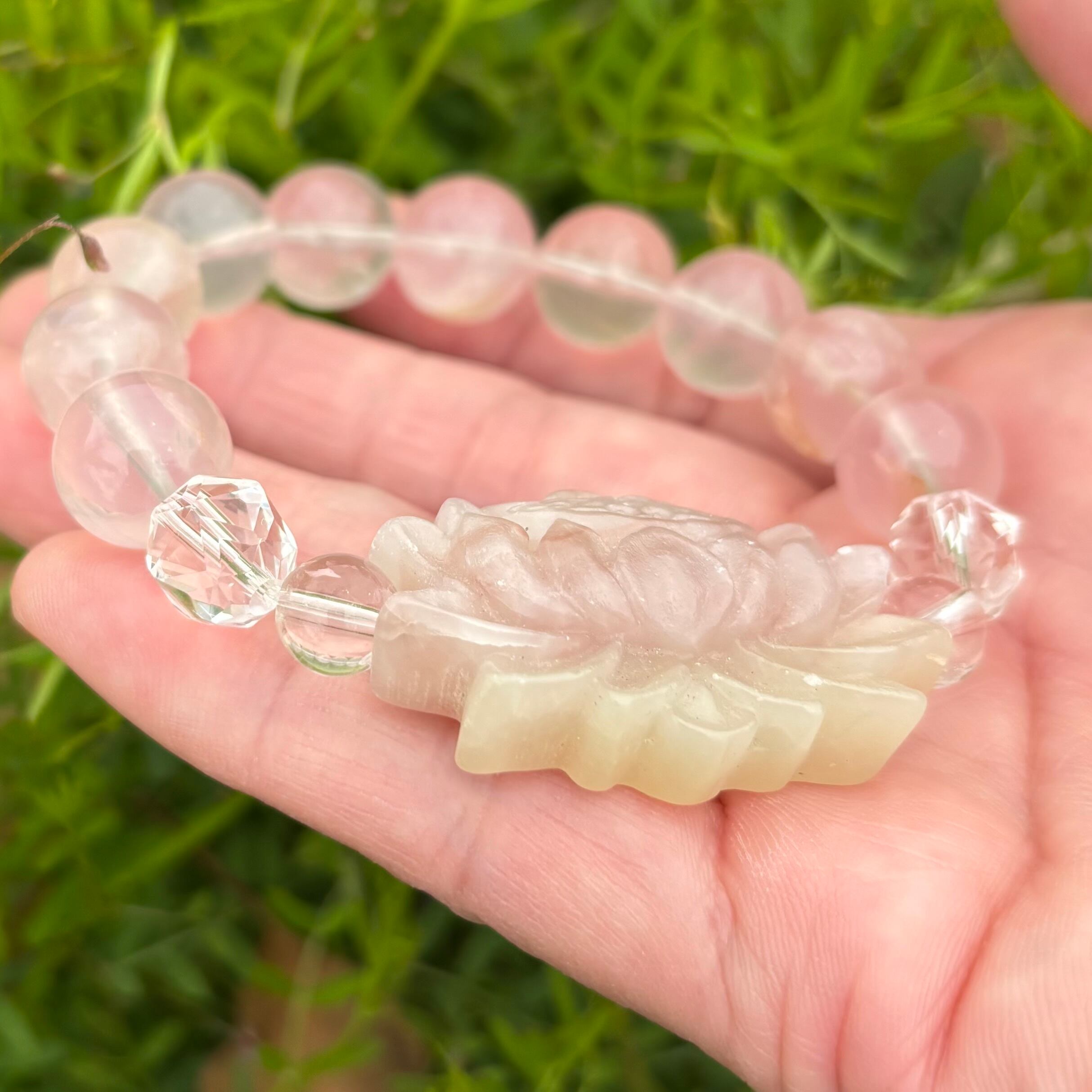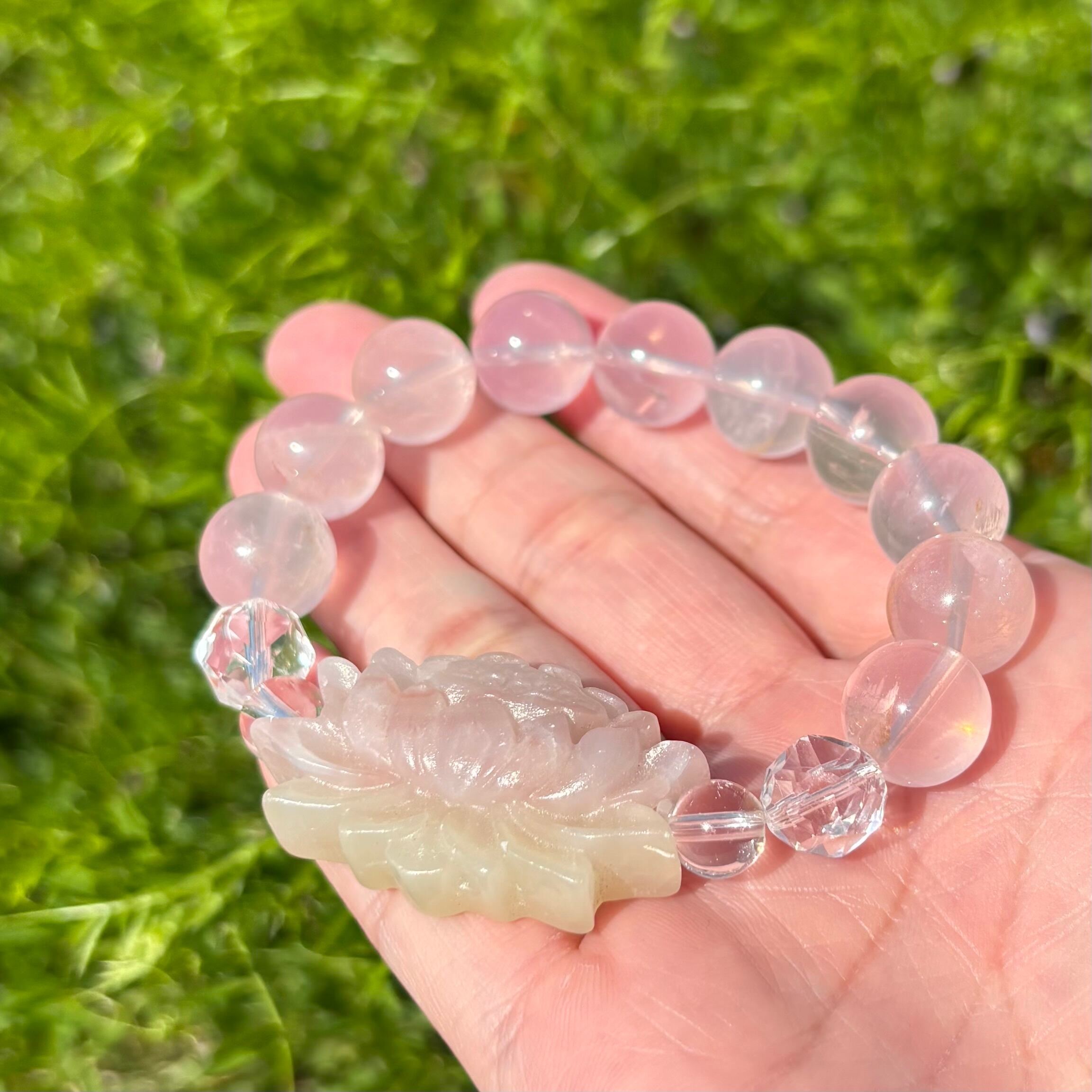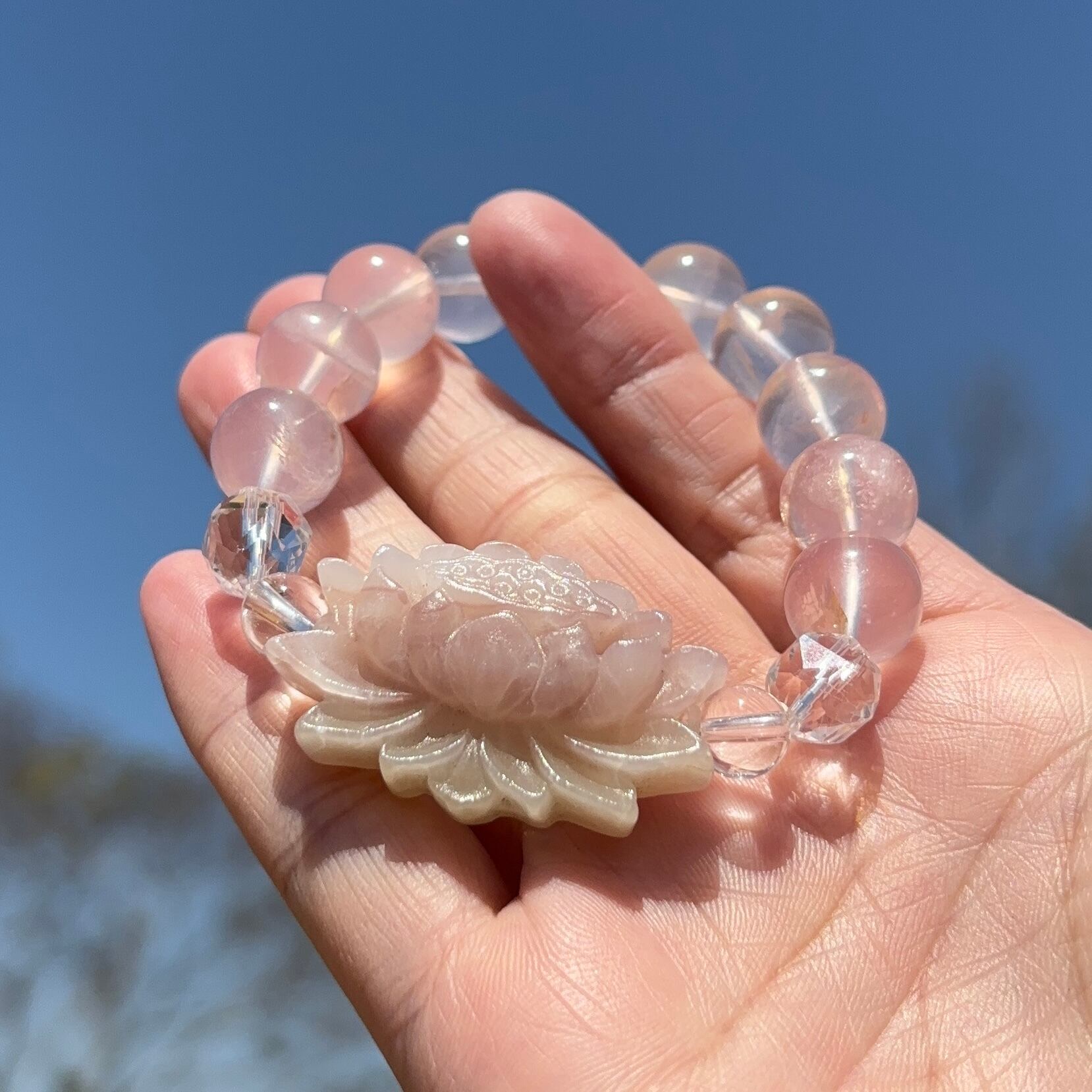 蓮の花のピンクオパールとスターローズクォーツのブレスレット❣️