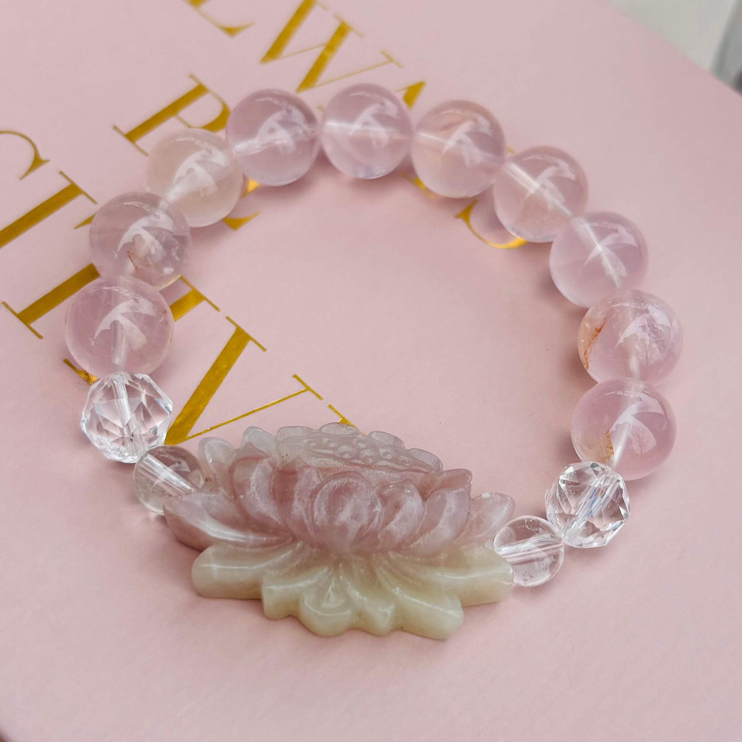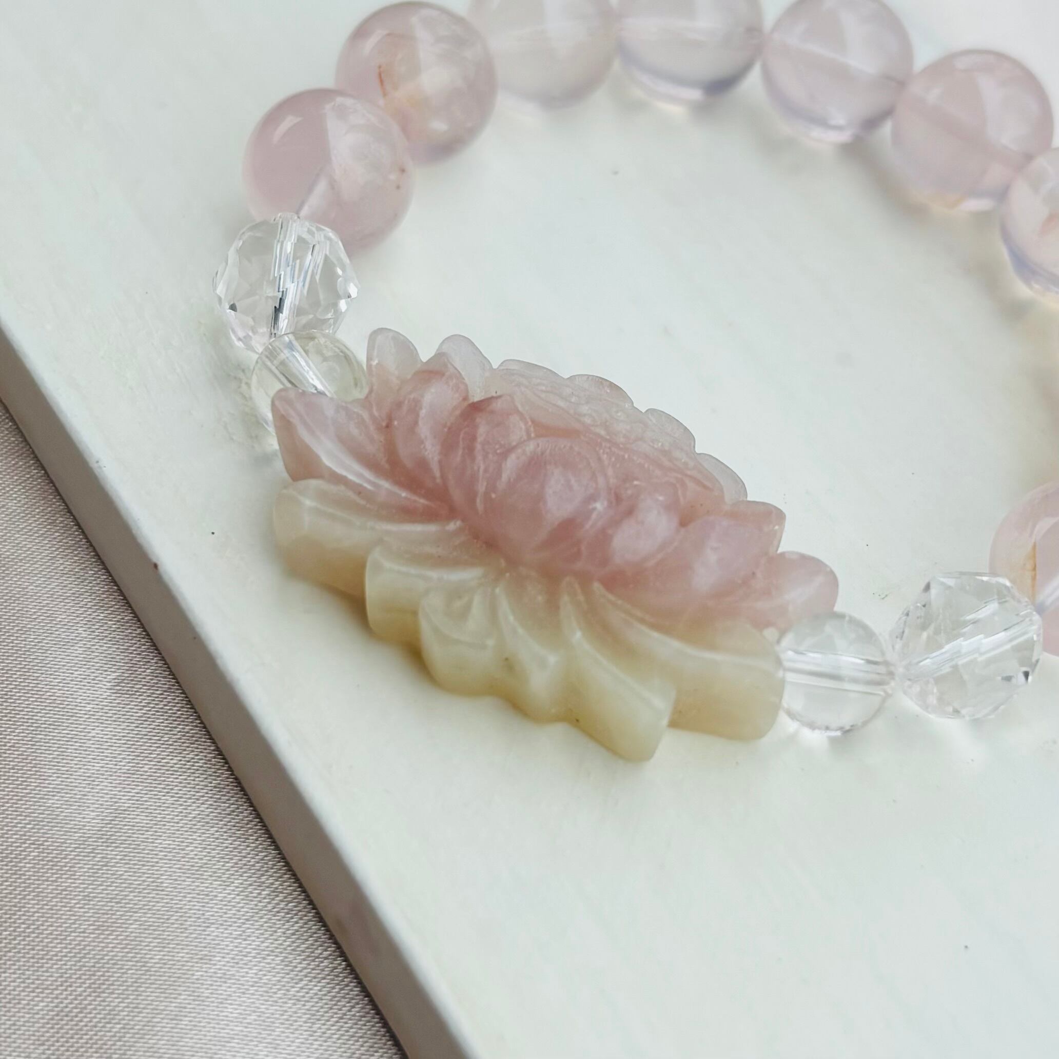 【恋愛成就】ピンクオパール蓮の花とスターローズクォーツ 天然石ブレスレット