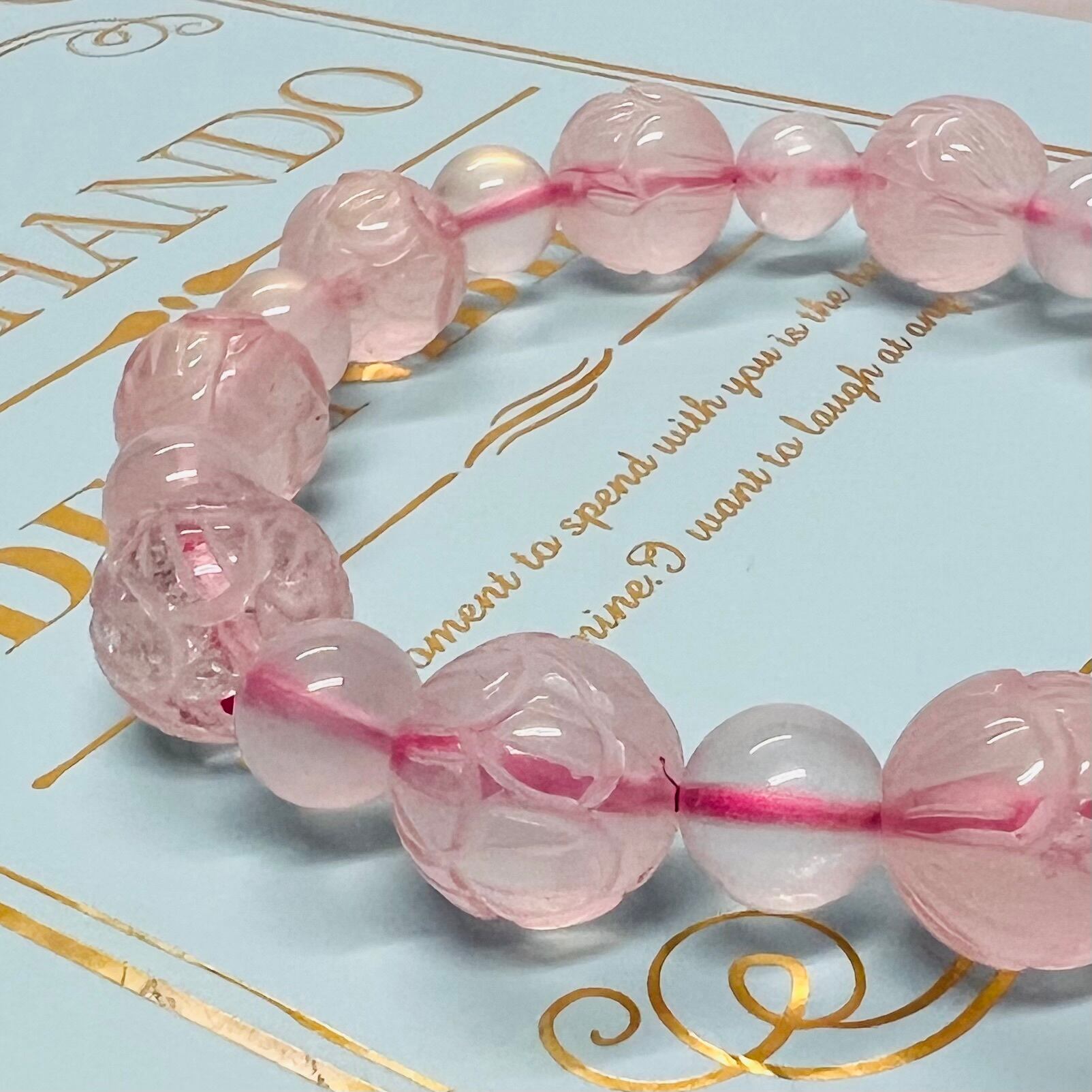 蓮の花彫り ローズクォーツ 天然石ブレスレット