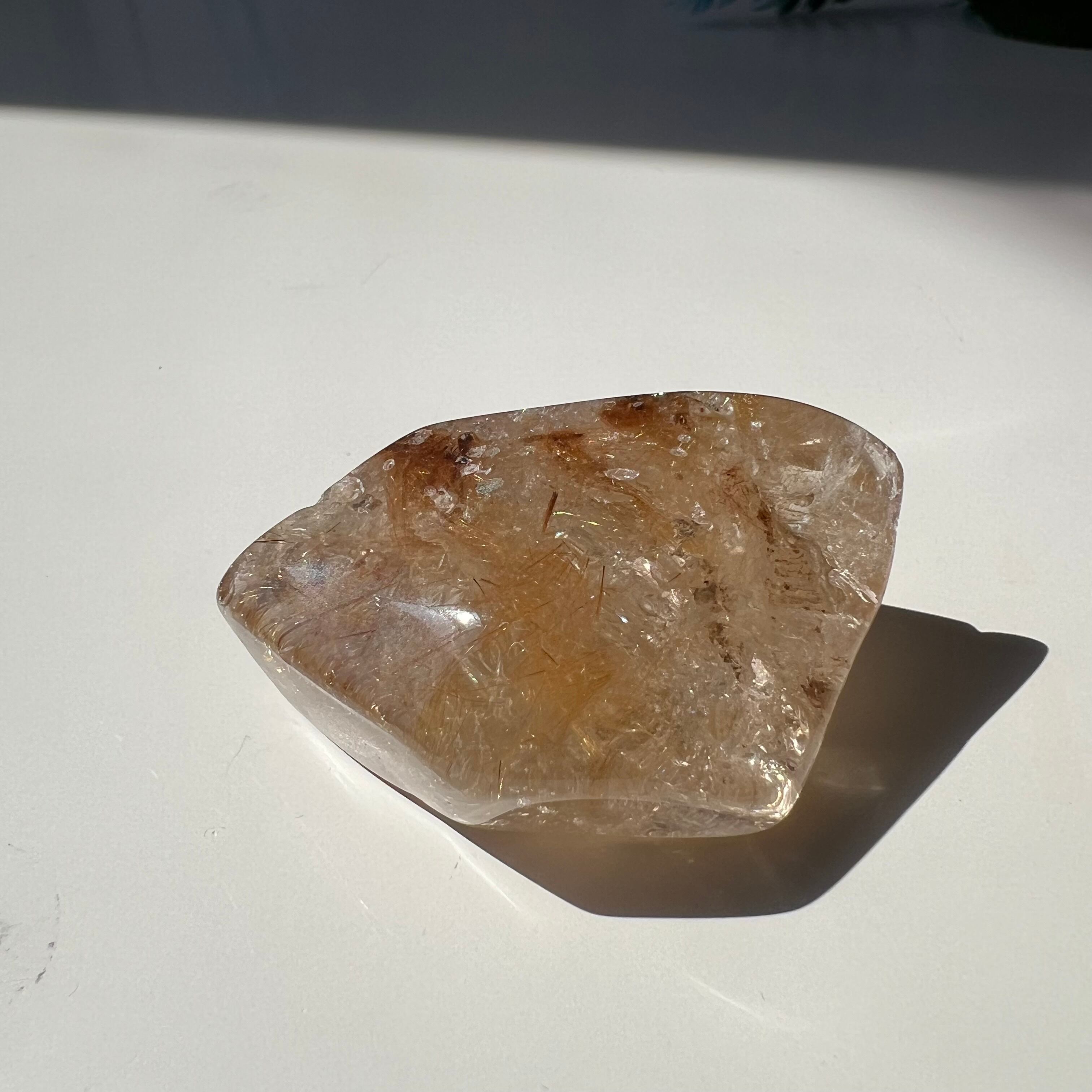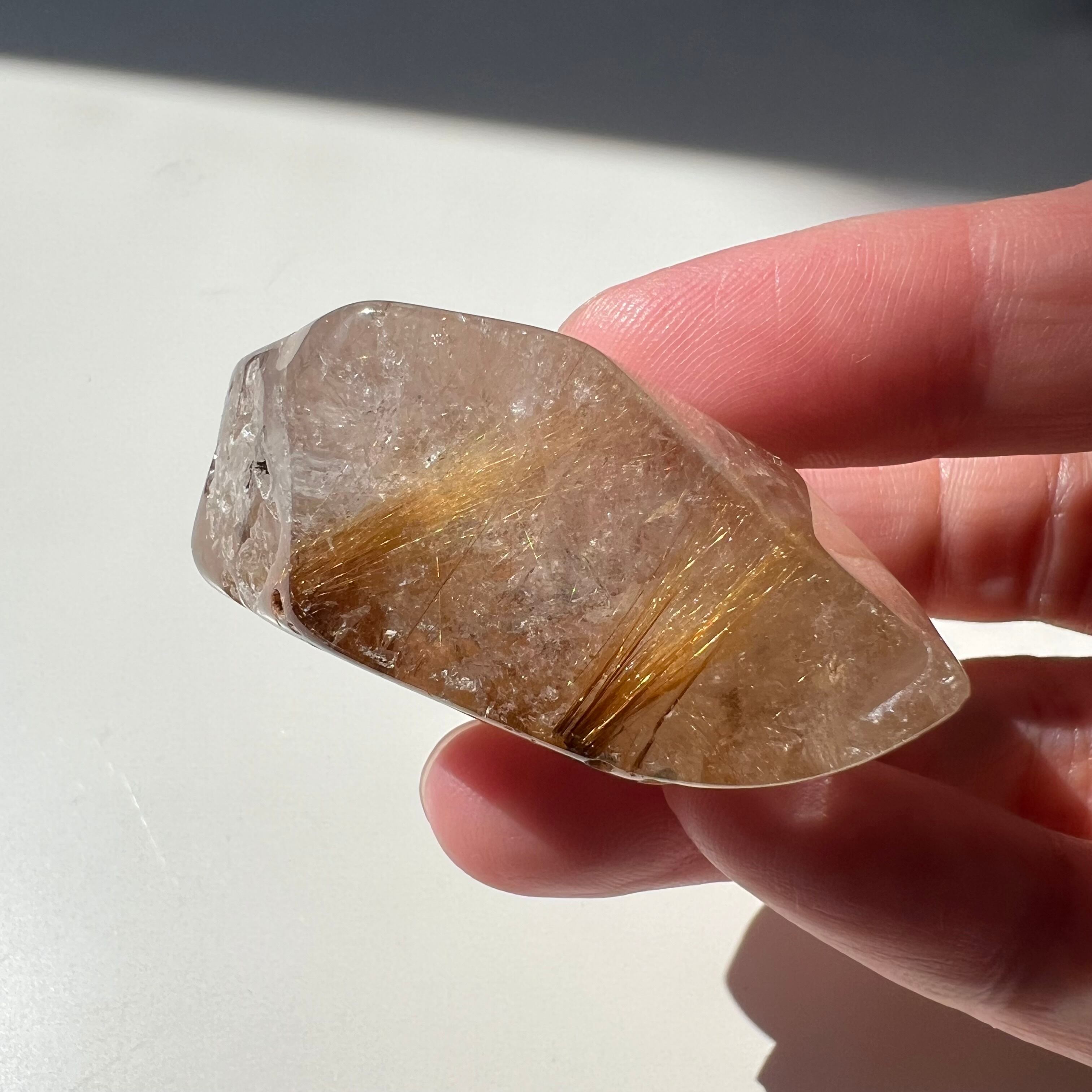 ルチルのフリーフォームは、長い年月をかけて自然に形成されたものです。この石を手に持つことで、自然の神秘と生命力を感じることができるでしょう。