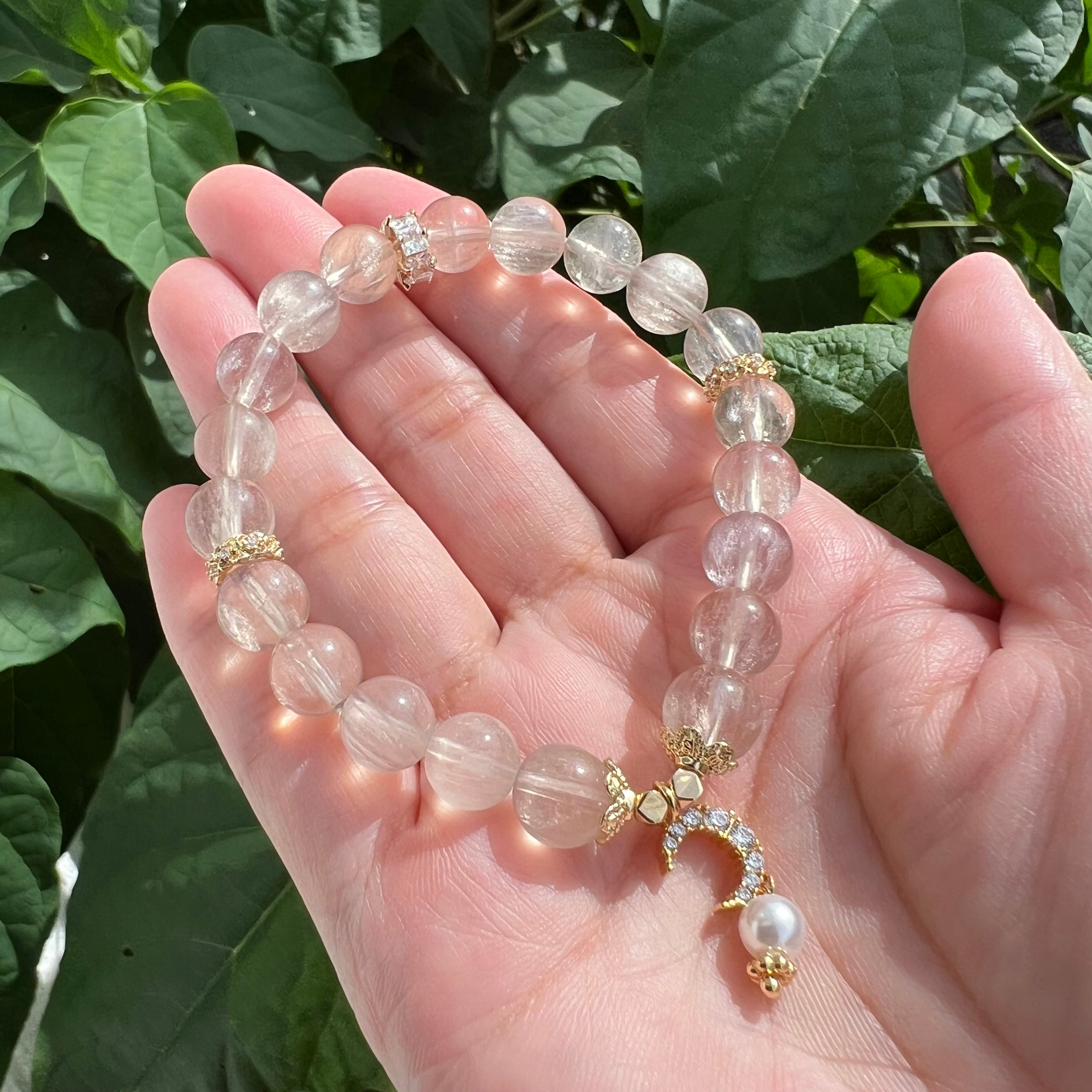 三日月と幻想的なニードルインフローライト 天然石ブレスレット